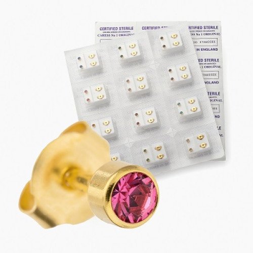 Rose Pink & Gold Colour Sterile Stud Earrings - One Pair